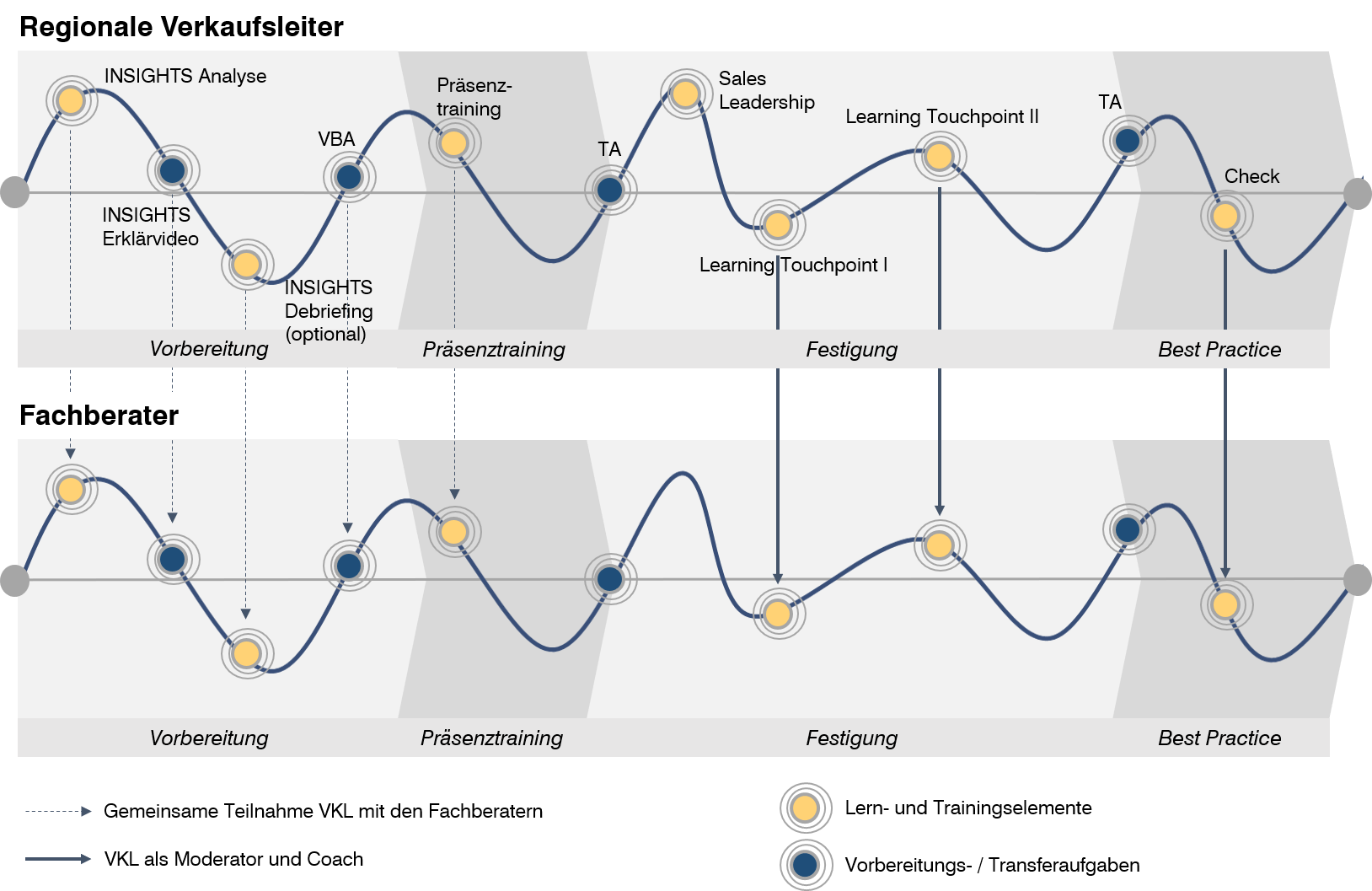 Sie finden nachfolgend verschiedene Konzepte von Learners Journies als Inspiration. Wir freuen uns, mit Ihnen einen passenden Entwicklungsplan im Blended Learning Format zu entwickeln und zu realisieren.