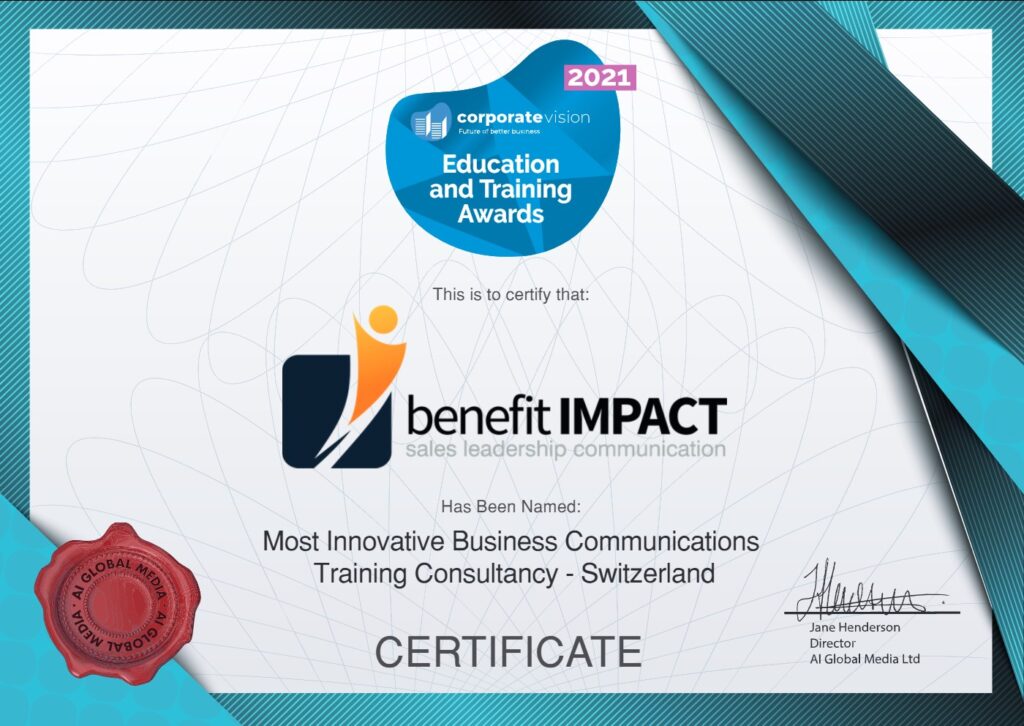 Dass dieser bei Auftraggebern sowie Teilnehmenden gleichermassen gut ankommt, und zudem mit dem AWARD «Most Innovative Business Communication Training Consultancy 2021» ausgezeichnet wurde, freut uns unglaublich!